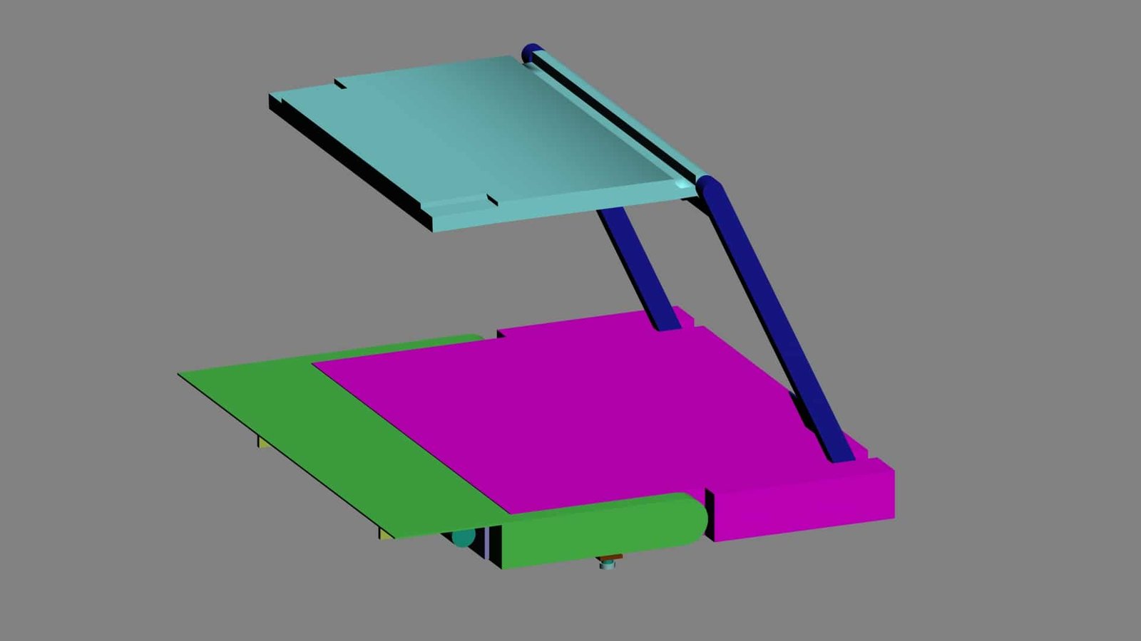 أما الجزء الثاني فهو السطح الرئيسي في الأداة، وهو جزء مسطح يمكن استخدامه لوضع الكتب أو استخدام الفأرة أثناء استخدام الحاسب الآلي المحمول، كما يمكن وضع كوب من القهوة عليه، بالإضافة إلى وجود عمود قابل للدوران والاستطالة مثبت على هذا السطح ويستخدم لتثبيت الأوراق أثناء الطباعة أو القراءة. أما الجزء الآخر فيسمح بجعل الأداة قابلة للدوران والطي ، لتصبح بربع حجمها عند الاستخدام”