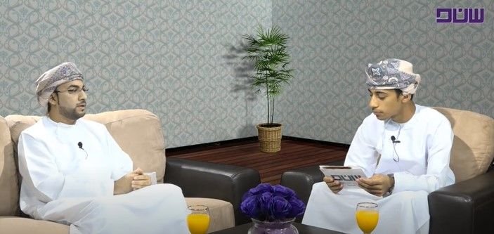 معاذ الرقادي متحدثا عن الحلقة النقاشية وتدشين كتاب (نفاذ بلا عوائق) في لقاء على تلفزيون سلطنة عمان